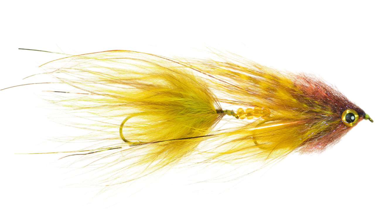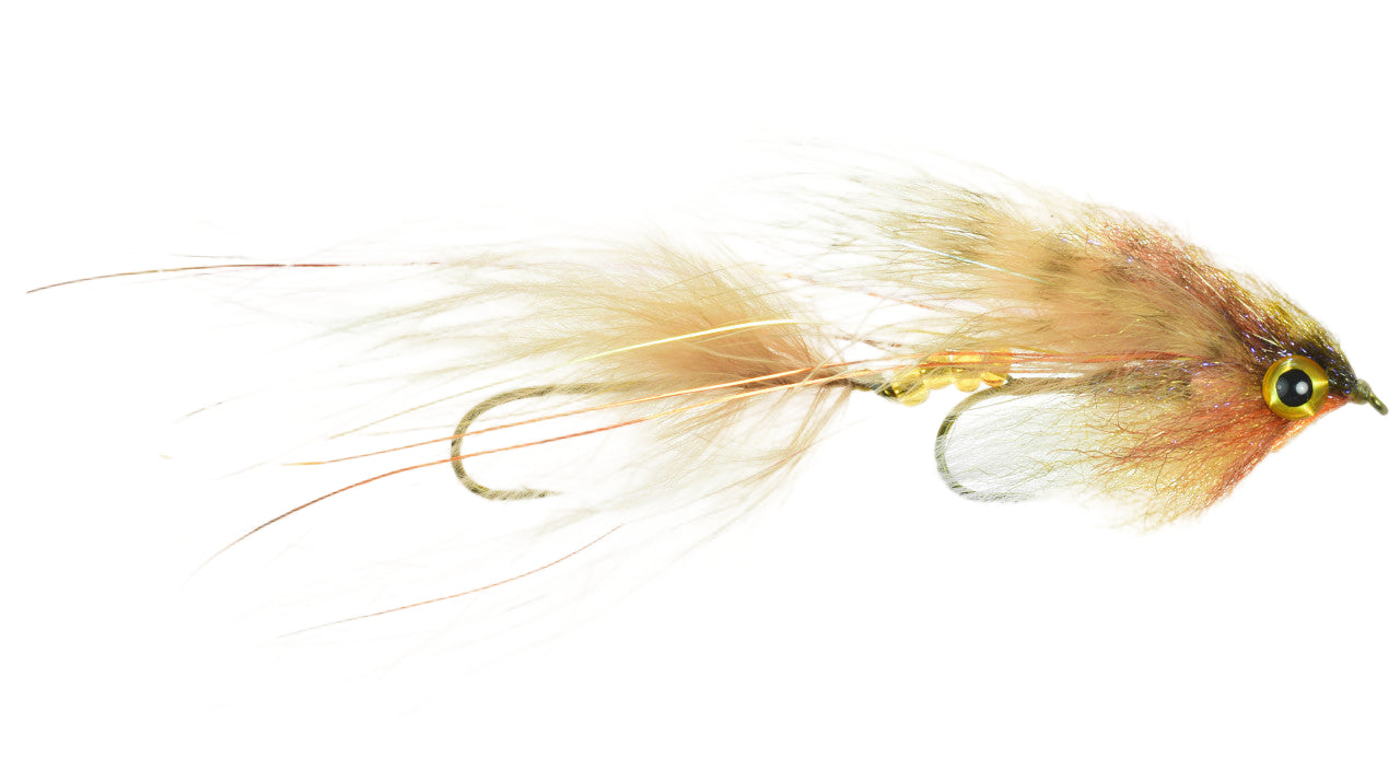 Articulated, larger and swimmier version of the original Hippy.  Meant to be fished slowly to let the marabou breathe.  Fish it through pockets and deep slots and jig it along.  Hidden cone spreader and ample lead wraps to stay down.  Double size 4 hooks.