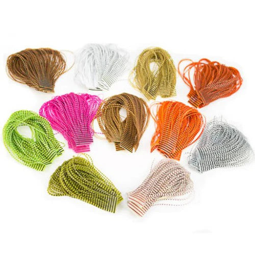 A synthetic, more durable version of a stripped peacock quill. This quill is clear with a dark edge to create the segmentation on a nymph. The color of the quill will come from the thread underneath.